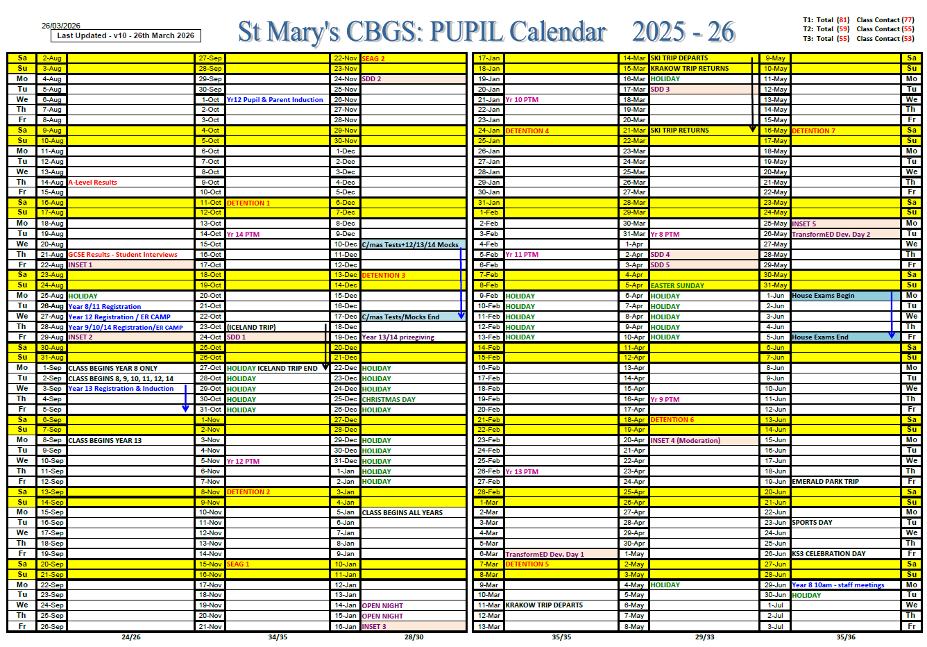 The calendar may be subject to change throughout the year and any such changes will be communicated to parents via SIMs Parent App and on the Website and social media channels.