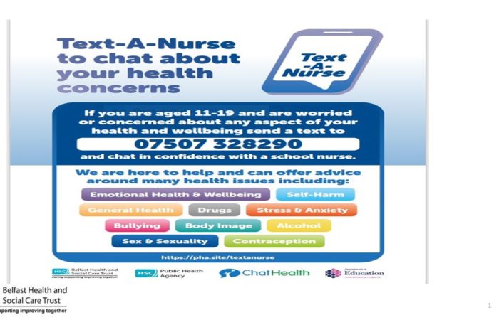 As we prepare to break for the summer please read the attached Chat Health contact details for the Belfast Trust.